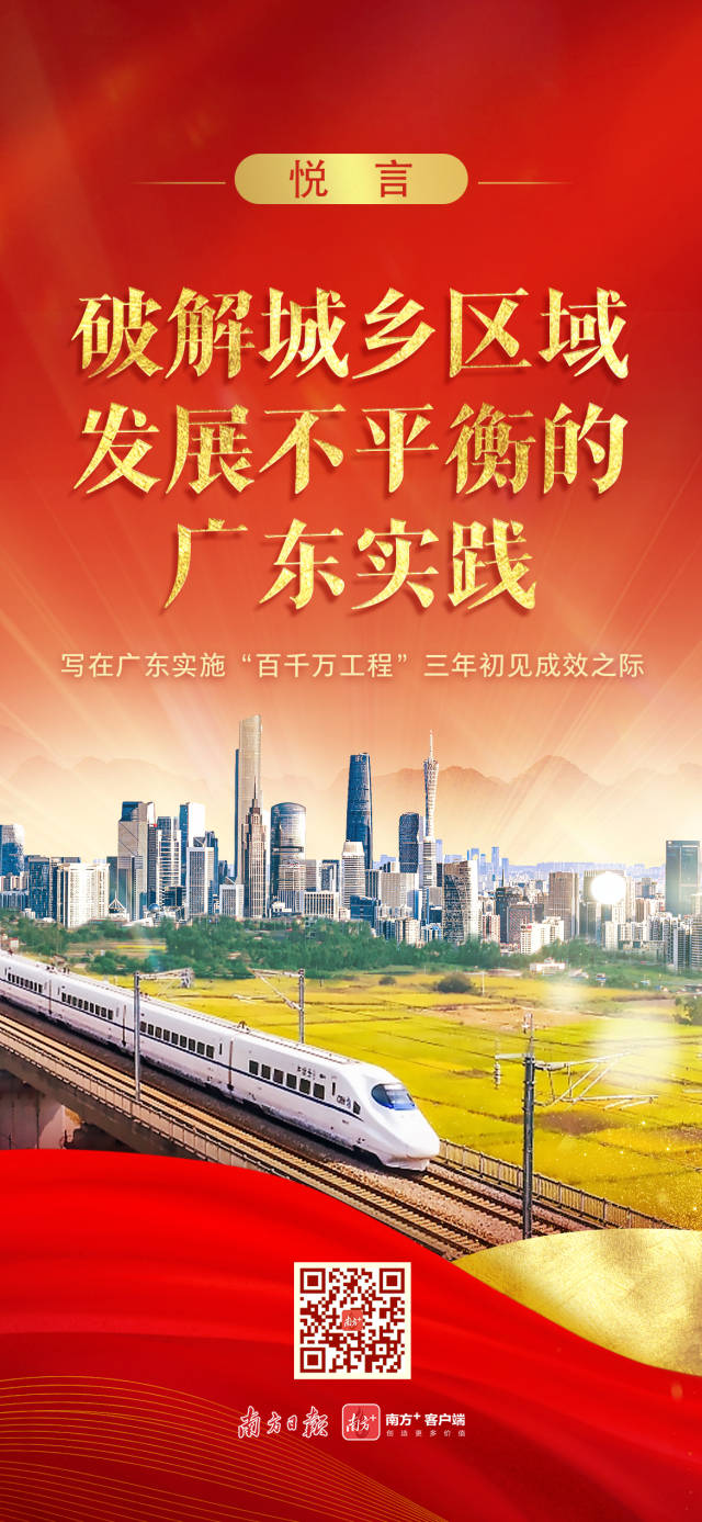 問題是時代的聲音。2022年12月,廣東在歷屆省委省政府工作基礎(chǔ)上,學(xué)習(xí)運用浙江“千萬工程”經(jīng)驗,立足省情實際,把握發(fā)展規(guī)律,作出實施“百縣千鎮(zhèn)萬村高質(zhì)量發(fā)展工程”(以下簡稱“百千萬工程”)的重大部署,舉全省之力系統(tǒng)推進(jìn),著力破解城鄉(xiāng)區(qū)域發(fā)展不平衡難題。