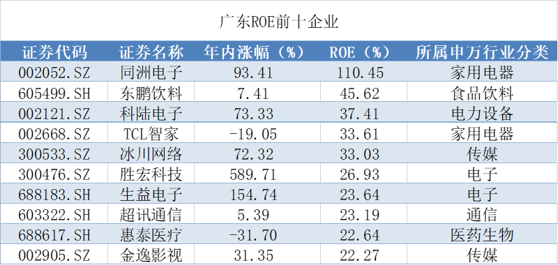 值得注意的是,以廣東企業(yè)為樣本,在制造和科技屬性密集的行業(yè),更容易發(fā)現(xiàn)通過(guò)經(jīng)營(yíng)效率改善實(shí)現(xiàn)高資本回報(bào)的公司。